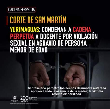Condenan a cadena perpetua a docente por violar a menor de edad