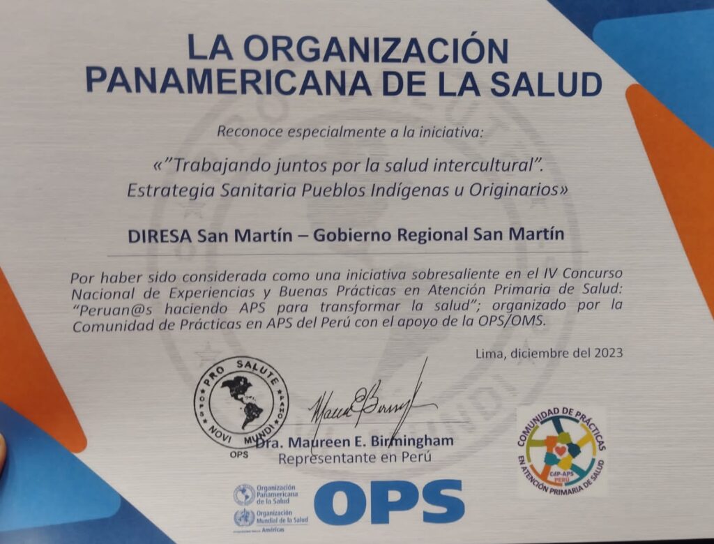Diresa recibió premio tras ganar el IV Concurso Nacional de Experiencias y Buenas Prácticas en Atención Primaria de Salud Perú 2023 La Dirección Regional de Salud (Diresa) del Gobierno Regional de San Martín, a través de la Estrategia Sanitaria Pueblos Indígenas u Originarios, fue premiada tras ocupar el primer puesto en el IV Concurso Nacional […]