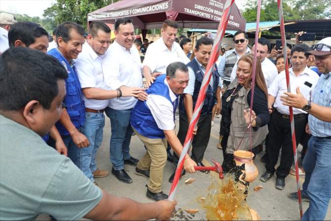 Gobernador Walter Grundel inaugura carreteras asfaltadas en el Alto Mayo.