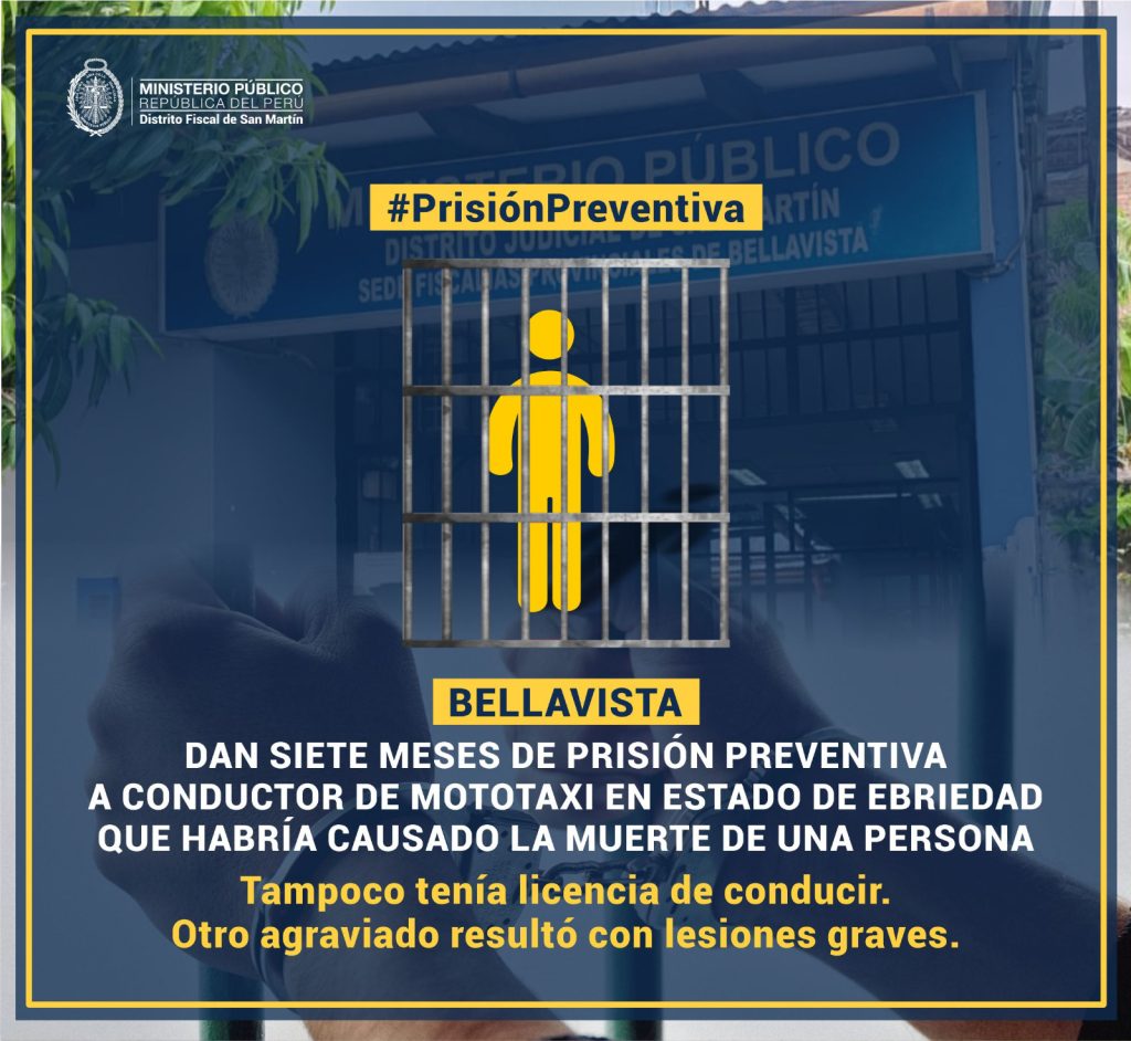 Dan siete meses de prisión preventiva a conductor de mototaxi en estado de ebriedad
