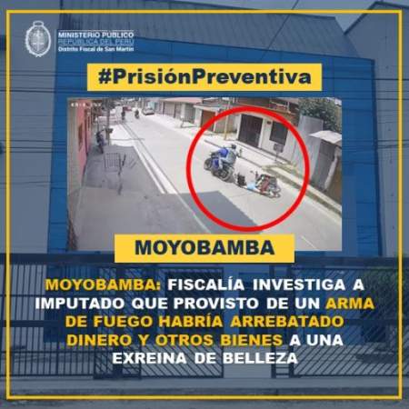 Informe técnico antropológico determinó que sus rasgos faciales coincidían con imágenes de cámaras de video vigilancia. (Moyobamba, 13 de febrero del 2025). – La Segunda Fiscalía Provincial Penal Corporativa de Moyobamba investiga a José Jordan Peralta Rodas, quien estaría involucrado en un presunto robo con arma de fuego, en agravio de Ana Geily Pérez Vega, […]