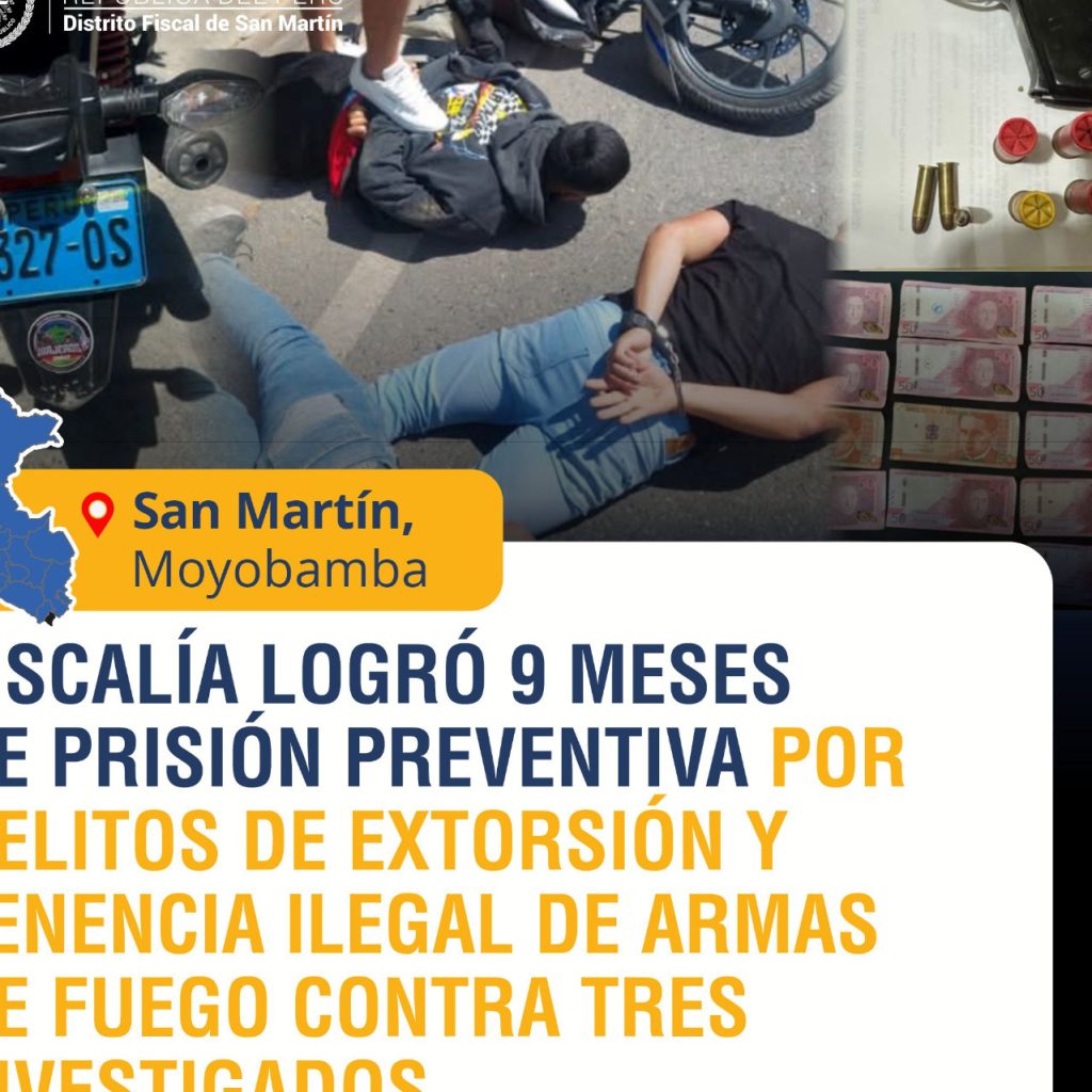 Habrían solicitado sesenta mil soles a un empresario, para, presuntamente, brindarle seguridad La Primera Fiscalía Provincial Penal Corporativa de Moyobamba, a cargo del fiscal provincial Marco Eugenio Acero Arocutipa, logró que se dicte nueve meses de prisión preventiva por los delitos de banda criminal y tenencia ilegal de armas de fuego contra Jhon Alex Vega […]