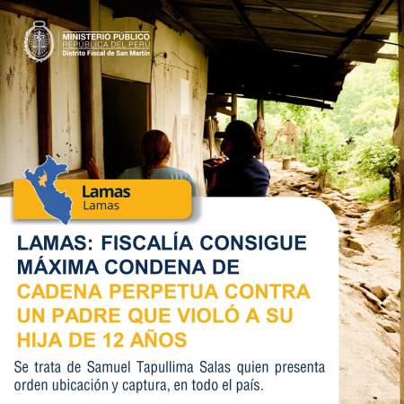 SE TRATA DE SAMUEL TAPULLIMA SALAS QUIEN PRESENTA ORDEN UBICACIÓN Y CAPTURA, EN TODO EL PAÍS. En la provincia de Lamas, un hombre identificado como Samuel Tapullima Salas fue sentenciado a la máxima condena de cadena perpetua, por abusar sexualmente y en reiteradas ocasiones de su hija menor de edad, tras la investigación realizada por […]