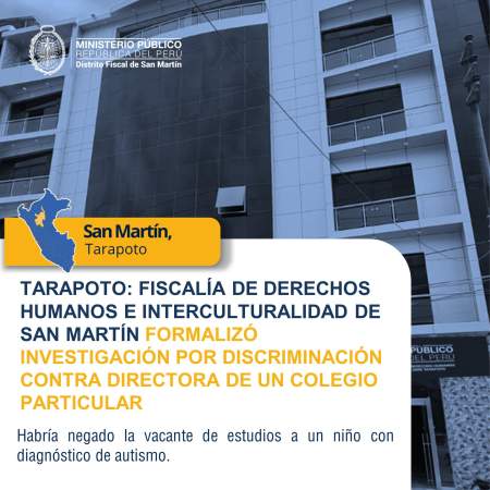 Habría negado la vacante de estudios a un niño con diagnóstico de autismo. Moyobamba. – La Fiscalía de Derechos Humanos e Interculturalidad de San Martín formalizó investigación preparatoria contra la directora de una institución educativa particular de Tarapoto, quien habría negado a un niño de cinco años, con diagnóstico de autismo, una vacante de estudios, […]
