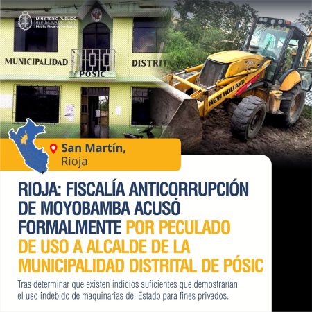 Fiscalía anticorrupción de Moyobamba acusó formalmente por peculado de uso a alcalde distrital de Pósic