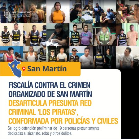 Fiscalía contra el crimen organizado de San Martín desarticula presunta red criminal ‘los piratas’, conformada por policías y civiles