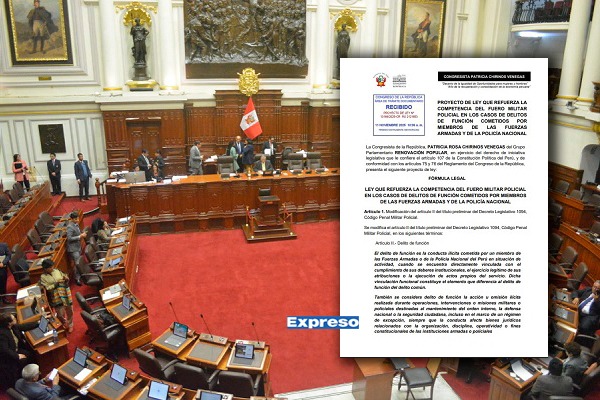 Congreso: presentan proyecto de ley que fortalece Fuero Militar Policial en casos de delitos de función de FF.AA. y PNP