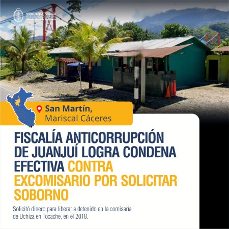 Fiscalía anticorrupción de Juanjuí logra condena efectiva contra excomisario por solicitar soborno