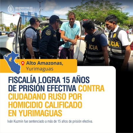 Iván Kuzmin fue sentenciado a más de 15 años de prisión efectiva. (Alto Amazonas, 2 de diciembre de 2025) – La Segunda fiscalía provincial Penal Corporativa de Alto Amazonas obtuvo una condena de 15 años, 4 meses y 5 días de prisión efectiva contra el ciudadano ruso Iván Kuzmin, declarado autor del delito de homicidio […]